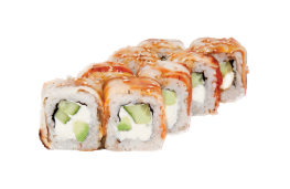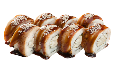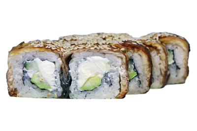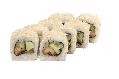 с угрём, сливочным сыром, огурцом, авокадо, кунжутом